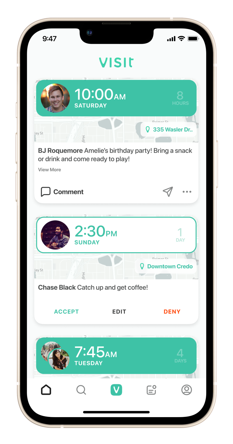 Visit helps keep you on track by collecting your events in a sleek, chronological feed.